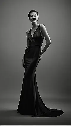 **Paragraph 1:** Whoa, check out this dress! It’s like something straight out of a glamorous movie. That sleek, black fabric looks super smooth and luxurious – like liquid midnight. The halter neck and that stunning mermaid tail are seriously next-level chic. Imagine yourself gliding across a dance floor in this bad boy – you’d totally outshine everyone! It’s the perfect blend of classic elegance and modern wow-factor. It’s a “classic silk dress” that screams sophistication, even if you’re just heading to the pizza place with friends.