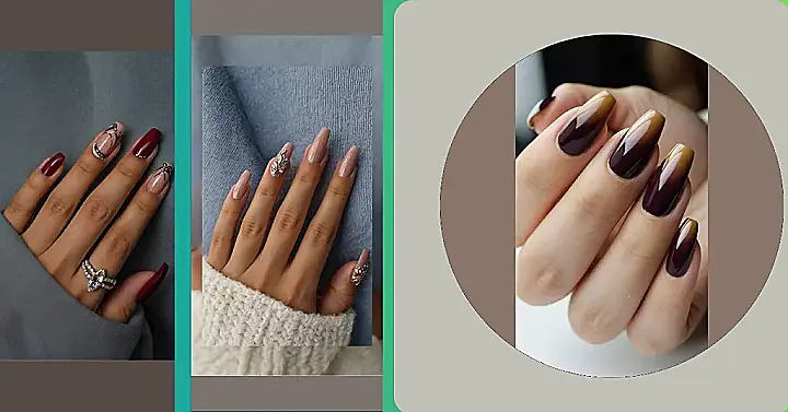 Look at those nails! They’re like little pieces of art, all sparkly and pretty. The brown and gold colors remind me of those yummy gingerbread cookies we eat around the holidays. And those sparkly rings? They’re like icing on the cake! These nails are ready to take on the chilly weather and look awesome doing it.