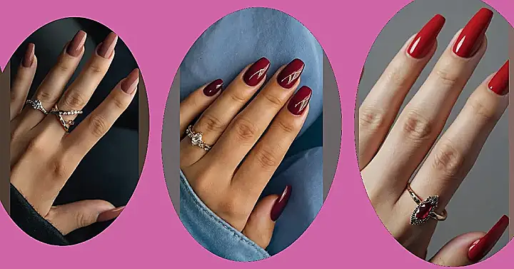 And guess what? Burgundy can totally rock a sparkly ring too! This photo shows a super cute ring with a big, sparkly diamond. It’s like the perfect combo of glam and cozy. Burgundy nails + sparkly rings = a win-win for the fall season!