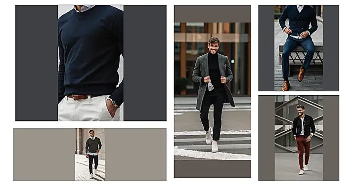Forget the ugly Christmas sweater! This guy’s got the perfect blend of festive and fashionable for the holidays. That burgundy sweater is like a warm hug, and those khaki pants are so effortlessly cool. He’s ready for anything – from a family dinner to a Christmas party, this outfit is sophisticated without being stuffy. Imagine him opening presents under the tree – stylish and totally ready for some eggnog!