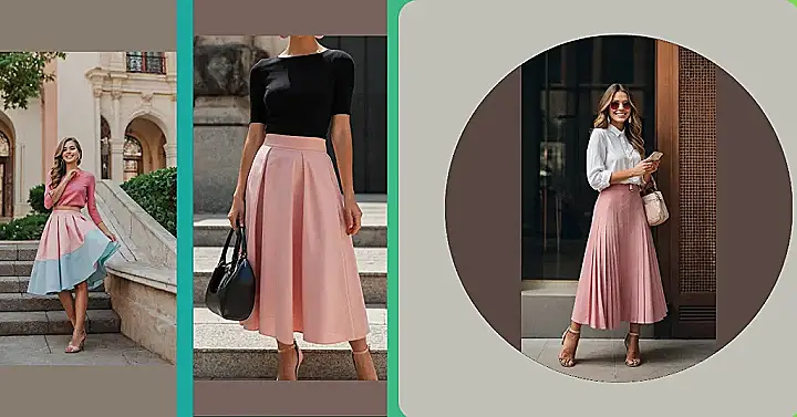This outfit is seriously adorable! Imagine rocking this pink pleated skirt to a fancy coffee date or even a school dance. Pair it with a light blue shirt, some cute heels, and a chic clutch and bam! Instant style superstar. It’s the kind of outfit that makes you feel confident and ready to take on the world, one perfectly pleated pleat at a time. Who needs a tiara when you have a skirt this fabulous?