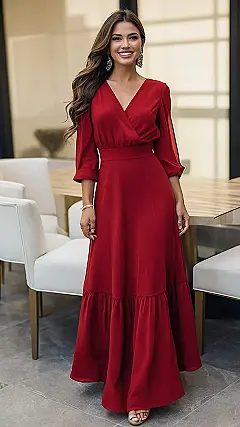 This stunning maxi dress is the perfect blend of comfy and chic. Imagine yourself strolling down the street, feeling like a total queen in this crimson beauty. Those puffed sleeves? Absolutely adorable! And that little lace detail? It’s like a secret whisper of elegance. It’s the kind of dress you can wear to a fancy party or just chillin’ at home with pizza and a movie—versatility is key, my friends!