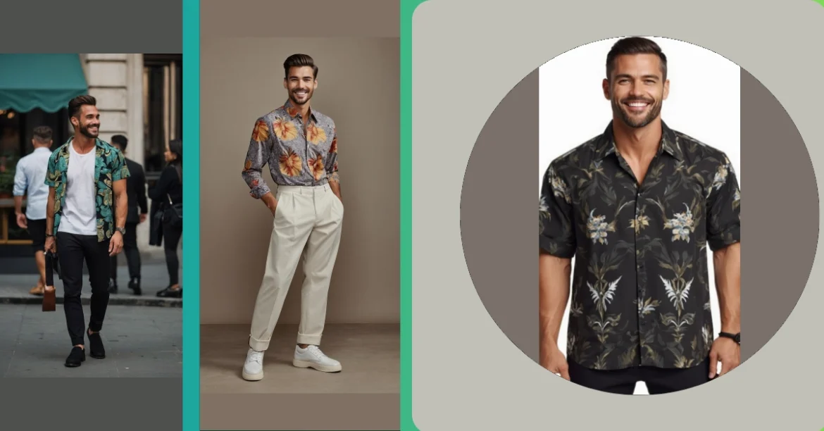 This guy’s totally nailing the “mens bold print shirt outfit” look! His shirt is like a tropical explosion of color – it’s so vibrant, it practically screams “summer vacation!” He’s rocking it with some dark pants, proving that even the wildest prints can be paired with something simple and stylish. I bet he gets compliments all the time – who wouldn’t want to be seen in such a fun and confident outfit?