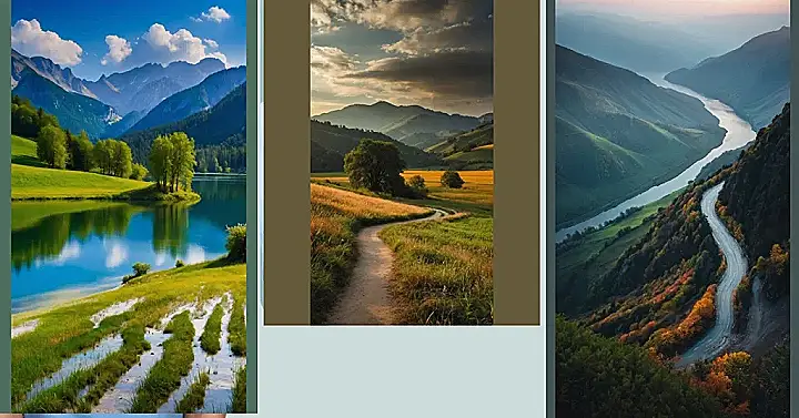 This picture is like nature decided to show off! Look at that river snaking through the mountains like a giant blue ribbon. And the hills are all green and fuzzy, making you wanna just roll down them (but maybe don’t, unless you enjoy a mouthful of grass). It’s like someone painted the ultimate scenic route, and now I’m picturing myself driving down that twisty road in a convertible, wind in my hair, singing off-key to my favorite playlist.