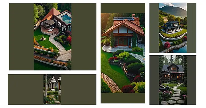 The house in this picture is definitely something special. It looks like a cozy little cabin nestled in the middle of a beautifully manicured garden. You can tell the owner put a lot of love into designing the outdoor space, with its winding stone paths, perfectly trimmed hedges, and bright, colorful flowers blooming everywhere. It’s like stepping into a fairy tale!