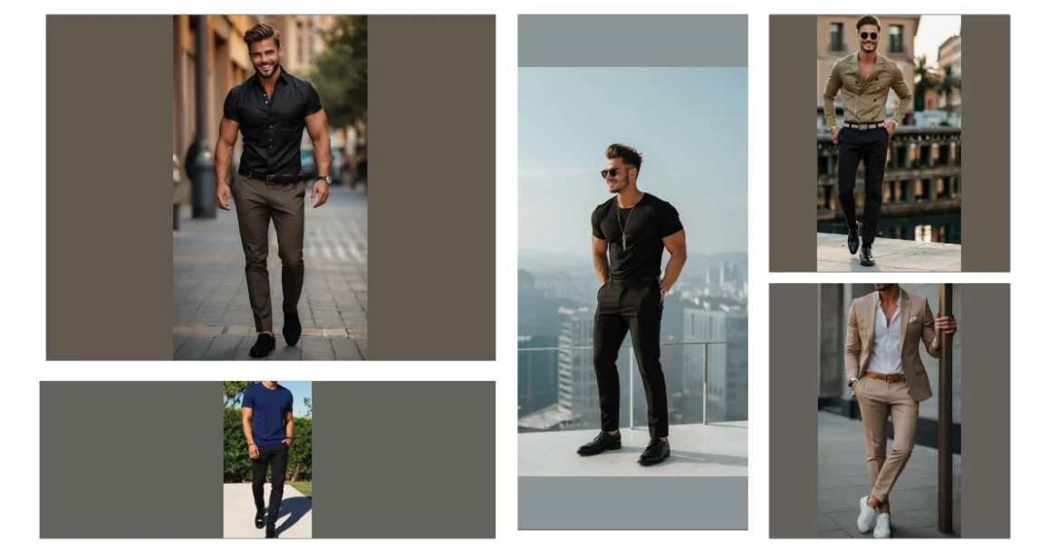 Think of this as the superhero costume for your everyday life! This guy’s rocking the “effortlessly cool” look. He’s got a simple, well-fitting blue t-shirt, some sleek black pants, and shiny shoes. It’s like he rolled out of bed, threw on a few things, and suddenly became a style icon. The lesson here? You don’t need a cape to look like you’re ready to save the world (or at least impress your crush).