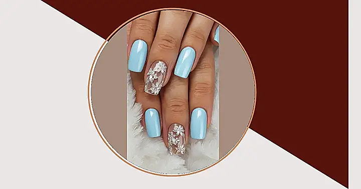 For those who seek something a bit edgy, coffin shape nails are trending hard this season. They’re dramatic yet stylish and pair excellently with bold colors and flowery designs! Who wouldn’t love a set of nails that boldly showcases summertime adventures while being statement-makers as well? And for all the color lovers, how about some trendy square blue designs to finish the look?