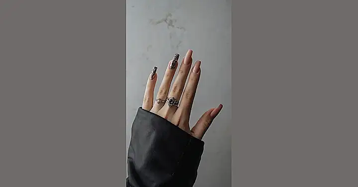 This is one of those nail colors that you can wear anytime, really. You know, even though it’s called “fall nails,” you can totally rock it in the summer, too! It’s like the color of a delicious red velvet cake, but with a little less sugar. It’s super sophisticated and makes your hands look long and slender. And with those rings, it’s a perfect accessory for a night out, or even just a casual day around town. You’re totally going to turn heads, whether you’re at the mall, at a football game, or just getting a coffee at your favorite shop. You’ll be the coolest one in the room, for sure!