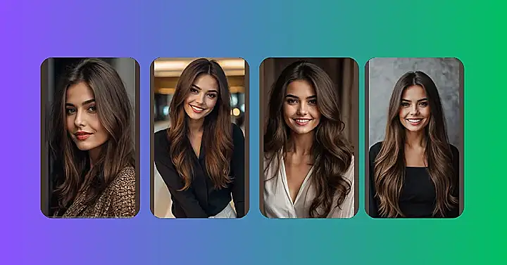 This lush brown mane isn’t just hair; it’s a whole mood! Paired with that super friendly smile, it gives off major “everything is awesome” vibes. It’s like the hair is saying, “Hey, world, check out this awesome human!” and the smile is adding, “Yup, that’s me!” It’s the kind of look that makes you want to be friends and maybe ask for her secret for hair that glossy.