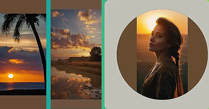 The sun is saying “see ya later” to the ocean in this beautiful sunset. It’s like the sun is giving the sea a big, warm hug, making the water sparkle like a million tiny diamonds. The sky is a mix of purple, orange, and pink, like someone spilled a giant paint pot over the clouds! It’s so pretty, you almost want to reach out and touch it.