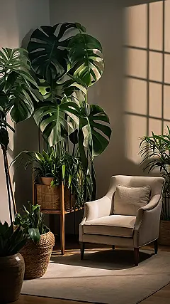 Bet you didn’t know your room could look this cool! Check out that Monstera deliciosa, rocking the indoor plant decor game like a leafy legend. It’s basically telling that boring corner, “Hey, I’m here to bring the party!” And it’s not just the plant; even the art on the wall is getting in on the action.