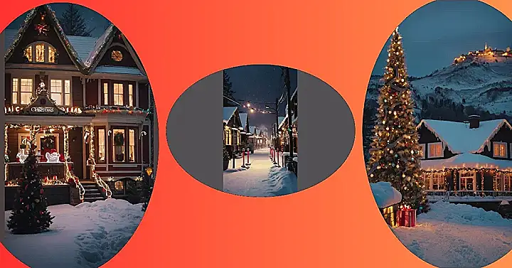 **Title:** Snowy Scene: Christmas Town Charm!