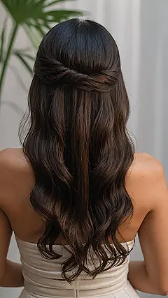 This hairstyle is like the perfect outfit for a homecoming dance – simple, but totally stylish! It’s not too fussy, but it’s definitely a step up from your everyday look. Imagine you’re wearing a cute dress with a flowing skirt and comfy heels… you want your hair to be just as effortless and elegant. This hairstyle is exactly that – soft waves with a simple twist that lets your hair shine without making you look like you tried too hard. It’s the perfect way to show off your natural beauty without being too over the top!