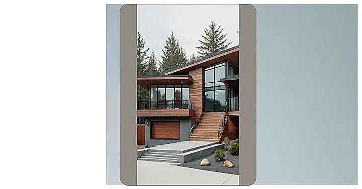 This house is like a fancy treehouse, but with way more style! It’s got all the modern, minimalist vibes, but with a twist. Imagine walking in and seeing a big, open space with tons of windows, letting in all the sunshine and fresh air. The wood floors are super smooth, making you feel like you’re walking on clouds, and the walls are simple but sleek, giving the whole place a calming feel. It’s kind of like a zen garden for your home!