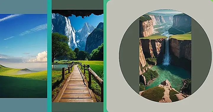 This picture looks like it came straight out of a fairytale! Imagine walking along that wooden path, the soft grass brushing against your legs as you head toward the misty waterfall. The tall mountains in the background look like they could be hiding magical creatures or a secret castle.
