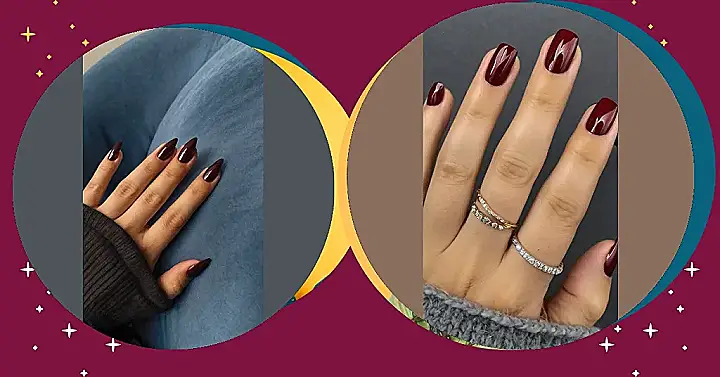 Those long, pointy nails are rocking a stunning maroon gel polish. It’s like the perfect shade for someone who wants to stand out but still be a little mysterious, you know? Like a vampire who loves to wear fancy clothes but also really loves pumpkin spice lattes.