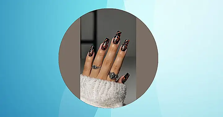 This person’s nails are ready to rock Halloween! The deep red and dark blue shades are totally spooky, like a vampire’s lair. They’re totally on trend and super stylish. Plus, they’re perfect for the autumn weather, reminding us of the cool crisp air and the changing leaves.