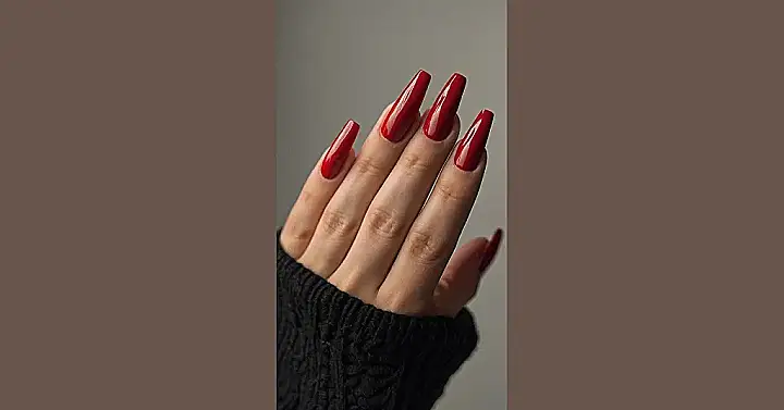 Those nails are so shiny, you could practically see your reflection in them! Seriously, imagine trying to subtly check your hair in the lunch line using just your fingernails. The red is so intense, it’s like they’re little stop signs for boringness. Anyone rocking these bad boys is clearly ready to take on the world, one perfectly polished digit at a time.