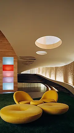 Imagine a world where buildings flowed like a river, curved like a tree branch, and felt as cozy as a hug. That’s the idea behind organic architecture. It’s all about making spaces that feel natural and comfortable, like they’re part of the environment instead of just stuck on top of it. This photo shows a really cool example of this idea. Look at how the seats are shaped like giant flowers, and how the ceiling curves like a leaf! It’s like stepping into a nature-themed living room.