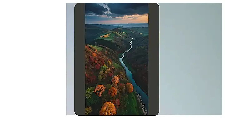 This photo is like nature’s way of showing off. Just look at those hills doing their best impression of a green rollercoaster, and that river winding through the trees like it’s late for a very important date. Plus, the trees are all dressed up in their autumn best, showing off all the shades of red, orange, and yellow. It’s so vibrant and detailed, your phone will look like it’s got its own tiny, breathtaking window to the world. It’s nature’s eye candy!