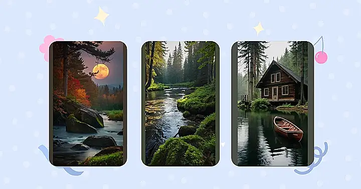 You know how sometimes you just want to escape the crazy world and chill out? Well, this picture makes me want to go for a walk in the woods, maybe even take a dip in that river! The moon seems to be whispering secrets to the trees, and the whole scene is just so calming, you could practically hear the quiet murmur of the water. It’s the perfect place to forget about your troubles and just enjoy the beauty of nature.