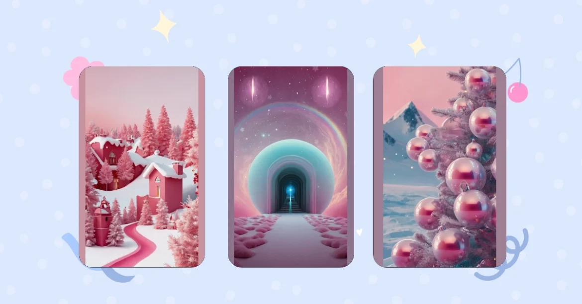 So if you’re ready to deck your devices with 21 cute pink Christmas wallpaper ideas, you’ve come to the right place! Together, we’ll inspire feelings of nostalgia while building anticipation for the joy these wallpapers will bring to your holiday season. Let’s dive into this bubbling cauldron of festive joy as we create the cutest pink screens around!