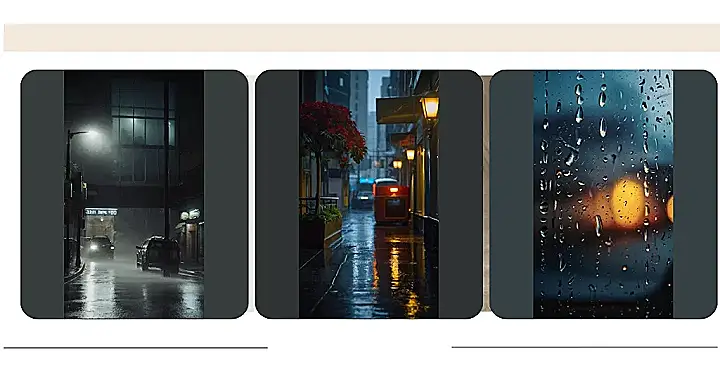 This picture is like a cozy rainy day scene straight out of a movie! Imagine snuggling up inside with a hot chocolate, watching the rain patter against the window, while a warm streetlight glows in the distance. It’s the perfect rainy day wallpaper because it’s calming and makes you feel all warm and fuzzy inside, even though it’s pouring outside. You can almost smell the petrichor – that fresh, earthy scent after the rain!
