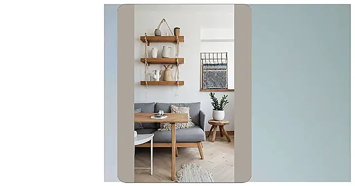 This living room screams “Scandinavian home decor” with its simple yet elegant design. It’s like a cozy hug for your eyes, with those warm, natural wood tones, comfy couch, and fluffy rug. The shelves with rope accents add a touch of rustic charm, while the sleek, minimalist decor keeps things looking fresh and clean.