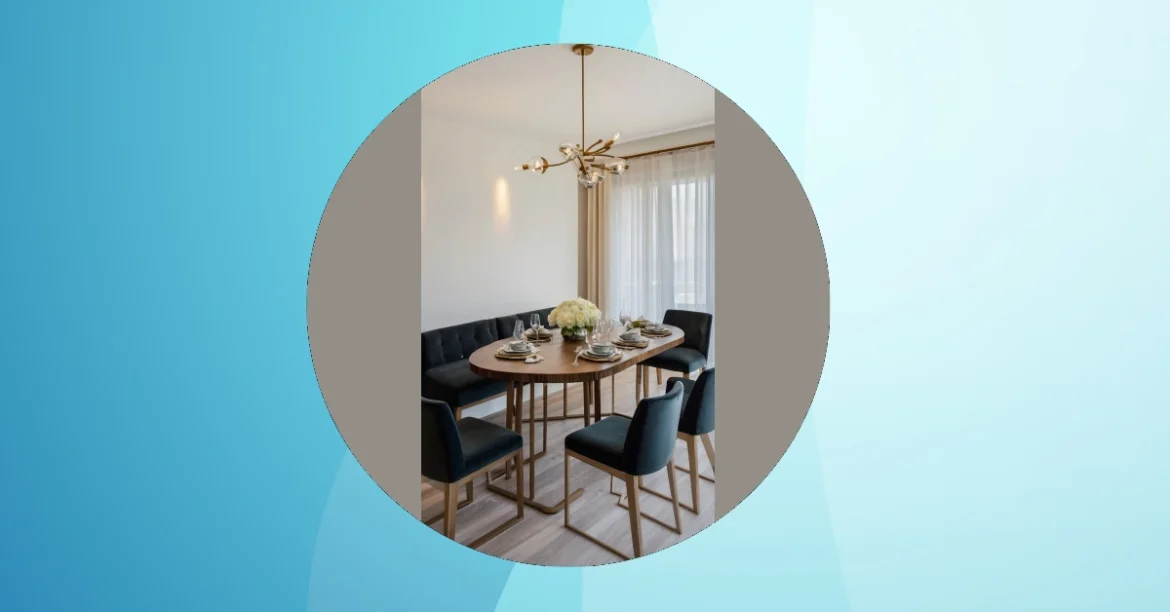 So, you’re thinking about sprucing up your dining room, huh? Well, check out this place! They’ve got this cool wood feature behind the table that’s not quite a wall, not quite art, but definitely eye-catching. It’s like they couldn’t decide between a forest and a room divider, so they just jammed them together. And the glass table means that when you accidentally drop your fork, at least you can still see it on the floor!