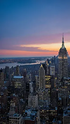 The sun is doing its best impression of a giant spotlight in the sky, making all these buildings in NYC practically glow! Looking at this picture, you can almost feel the heat bouncing off the pavement down below, where everyone is probably trying to find the nearest ice cream truck or desperately standing in front of an open subway vent for a cool breeze. Summer in the city is a whole different vibe, a busy, sticky-sweet kind of energy that fills the streets between these towering giants like the Empire State Building you see sticking out there. It’s like the whole city is a giant oven, but everyone’s too excited about rooftop parties and park picnics to care!