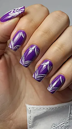 These aren’t just any nails; they’re practically a tiny garden growing on your fingertips! The white leafy designs add a touch of elegance, like you’ve been frolicking in a magical, purple flower field. Just be careful not to accidentally start pollinating everything you touch – although, imagine the world with more purple flowers? You would be a trend setter!