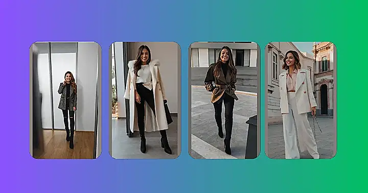 This fall, ditch the oversized sweaters and say hello to a chic and cozy look! The white coat is a statement piece that says, “I’m ready for fall,” while still being super comfy and stylish. Pair it with some black jeans and those awesome boots, and you’re good to go. This look is all about feeling confident and looking amazing, even when the leaves are falling and the air is getting crisp! Ready to rock this fall look?