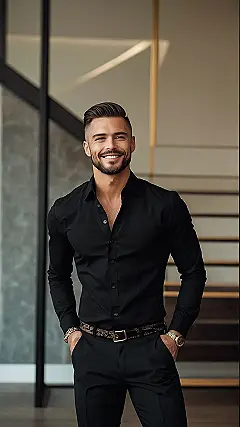 Want to look less like you raided your dad’s closet and more like you stepped out of a magazine? This dude’s got the right idea. A simple black shirt and some nice pants can do wonders. It’s like the secret agent version of dressing up – understated, but totally effective. Just make sure your shirt actually fits, and maybe hit the gym a few times, just kidding (mostly!).