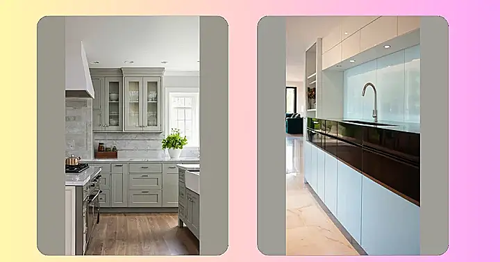 Thinking about all these different cabinet styles can be a little nutty, like trying to choose your favorite ice cream flavor. The flat-front gray ones are like that classic vanilla – always a good choice. And those wooden ones with the glass doors? They’re like that fancy pistachio – a little bit unexpected but definitely adds some flavor. It’s all about figuring out what you want your kitchen to *say* when people walk in the door!