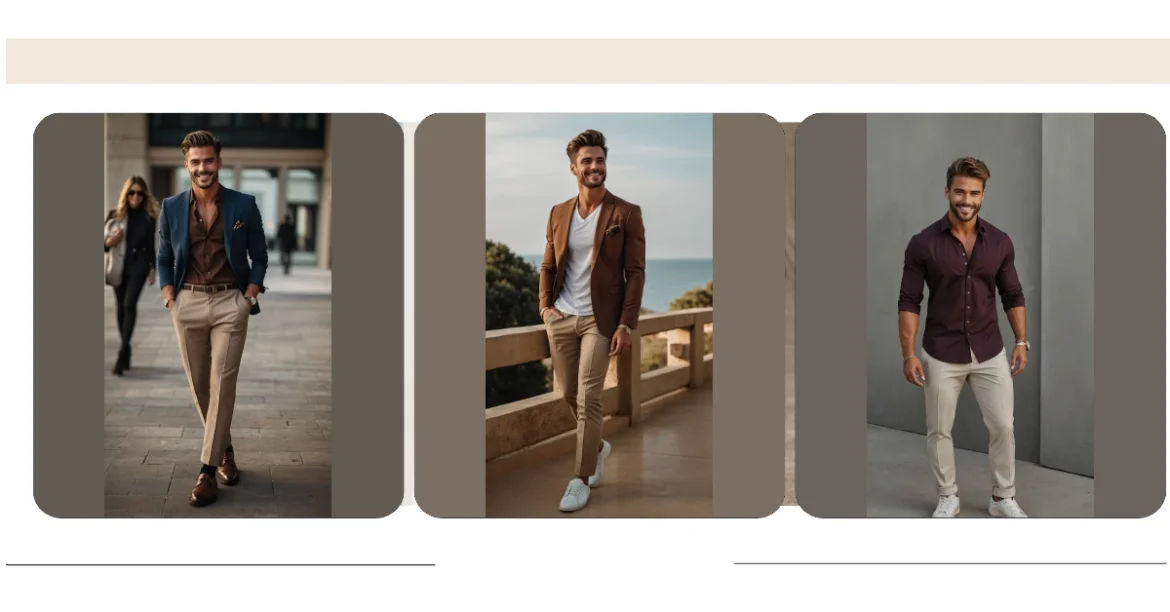 Following the latest men’s fashion trends doesn’t mean you have to wear something wild that lights up in the dark. It’s often about rocking cool color combinations, like these relaxed khaki pants with a sharp jacket and a shirt that actually fits. You don’t need a personal stylist, just maybe check if your socks match and hope nobody notices the stain from lunch. Looking good isn’t just for red carpets; sometimes it just means looking like you tried slightly harder than rolling out of bed.