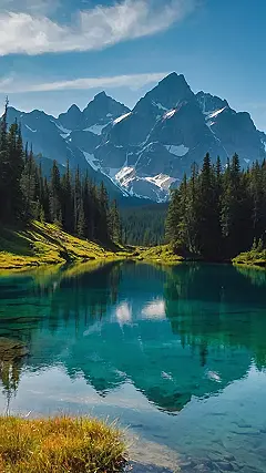 Wow, check out this picture! It’s like someone took a postcard from a fairy tale and made it real. The mountains are so majestic, they almost look like they’re wearing snow-white hats. And that lake? It’s perfectly still, like a giant mirror reflecting the whole incredible scene. It’s the kind of pretty landscape photography that makes you want to pack a bag and go exploring, even if your exploring is just looking at amazing images like this.