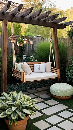 So, your backyard is the size of a postage stamp? No sweat! Check out this setup. This picture proves you don’t need acres to create your own chill zone. With a comfy swing like that and a few cute lights, even the tiniest backyard can become the ultimate hangout spot. You could even fit a mini fridge for snacks!
