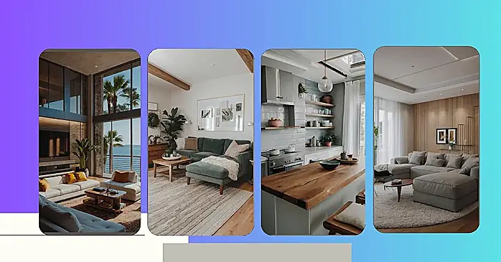 This living room is like a breath of fresh air, literally! Imagine waking up to the sound of the waves crashing and the sun peeking through those giant windows. No clutter here, just a comfy couch, a couple of pillows, and a stylish coffee table. It’s the perfect place to relax and enjoy the view without being distracted by a million knick-knacks.