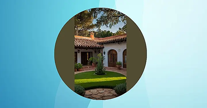 The arched doorways look straight out of a movie, and that perfectly round patch of grass is begging for a picnic. Imagine having a fiesta here with all your friends, complete with churros, salsa dancing, and maybe even a piñata! It’s the kind of place that makes you want to grab your guitar and start serenading the neighborhood, even if you only know three chords. This is definitely a house that knows how to party!