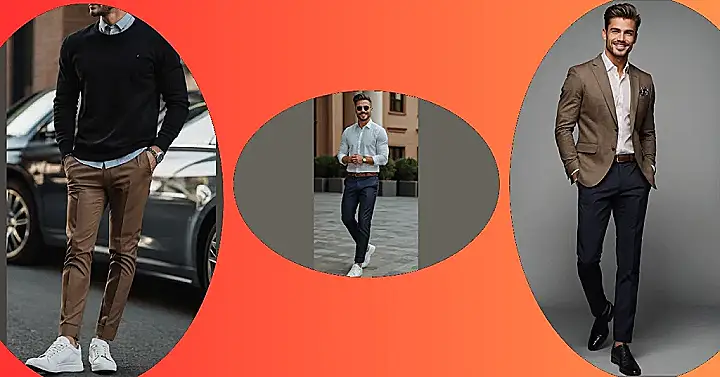 Who says getting men’s business outfits has to mean old-fashioned suits only? This kind of style shows you can look professional and put-together while still having some personality. Finding clothes that fit well and make you feel good is key. Little details like a nice watch or a cool belt, just like the one in the picture, can really make a simple shirt and pants combo look awesome and feel less like you’re playing dress-up and more like you own the room.