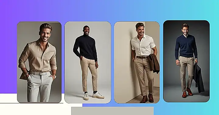 This guy knows how to rock classic men’s clothing! His navy blue sweater looks super comfy, perfect for lounging around or heading to a cool coffee shop. And those tan pants? Talk about classic! They’re a timeless choice that goes with everything. You could probably borrow his outfit and still look amazing. Just make sure you’ve got the confidence to pull it off!