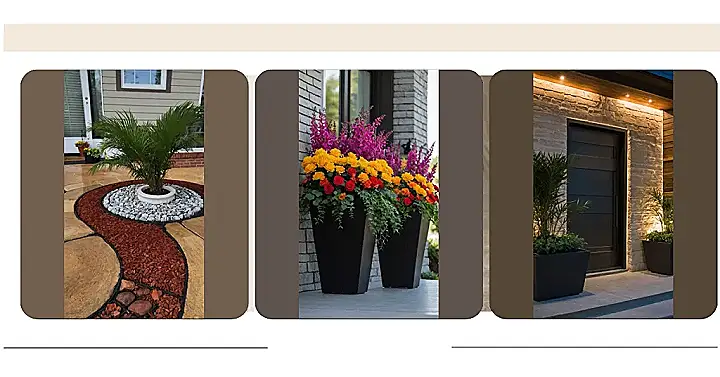 Having these green buddies near your door isn’t just for show, it’s about giving your home some personality. Instead of guests walking up to just a door frame, they get greeted by some cheerful leaves and pops of color. It feels way more welcoming, like the plants are tiny greeters saying hello! The design in the image with the rocks and mulch really makes the whole area pop, showing how creative you can get with different planters and arrangements. Basically, your front porch becomes less like a blank wall and more like a happy hello, all thanks to some well-placed pots and plants.