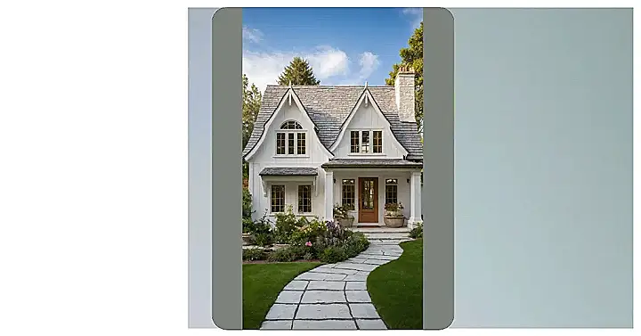 Check out this white cottage, looking all innocent and charming like it just rolled out of a fairy tale. Its exterior is so bright and white, you’d think it survives purely on sunshine and good vibes, definitely not mud puddles or accidental soccer ball dents. The bushes down front are putting on a serious performance, trying to look all neat and tidy, probably whispering gossip about who last tripped on those perfectly stacked brick steps. It honestly looks like it’s posing for a magazine cover, probably titled “Homes That Are Way Prettier Than Yours”.