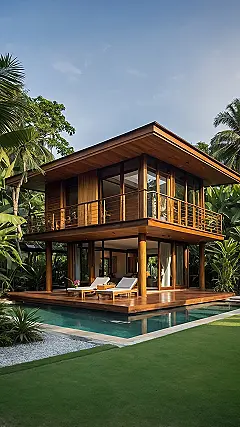 This place looks less like a house and more like a super-fancy treehouse that grew up and got seriously cool. With all that warm wood and glass, it’s like they brought the jungle *inside*, but in a totally good way, without the actual bugs (hopefully). You could probably convince yourself you’re on vacation even when you’re just trying to find matching socks in your room. It’s the kind of spot where doing anything feels more adventurous, like maybe even doing chores becomes a quest through a lush, modern paradise.