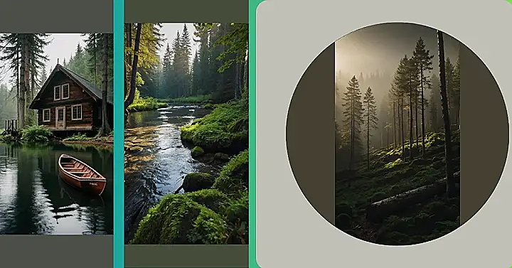 This picture makes you feel like you’re stepping into a fairytale! It’s like a scene straight out of a movie, where the sun is shining through the thick mist of the woods. The trees are all tall and skinny, like they’re trying to reach up to the sky, and the ground is covered in soft, green moss. It looks like a magical place where anything could happen!