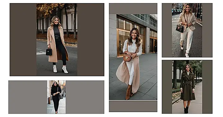 This outfit is perfect for those chilly fall days when you want to look stylish but still feel cozy! The camel coat is super trendy, and the white fur trim on the sleeves is like a little hug for your arms! And don’t forget those white booties – they’re the perfect pop of color and are super comfy!
