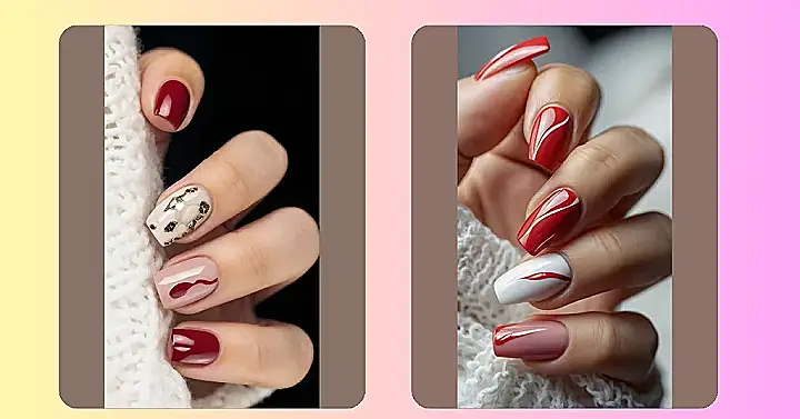 Seriously, check out these designs! You’ve got the classic, striking red ones that are just begging for compliments, but then there are the ones that are basically tiny works of art. That nail with the cool wavy red line on a nude base? It looks like a little abstract painting that belongs in a gallery, or maybe just really likes flowing in the spring breeze. And that geometric one with the gold sparkle? It’s so fancy and unique, it might be plotting world domination, or at least planning the ultimate spring break trip. Your nails will definitely be the most interesting things at the party!