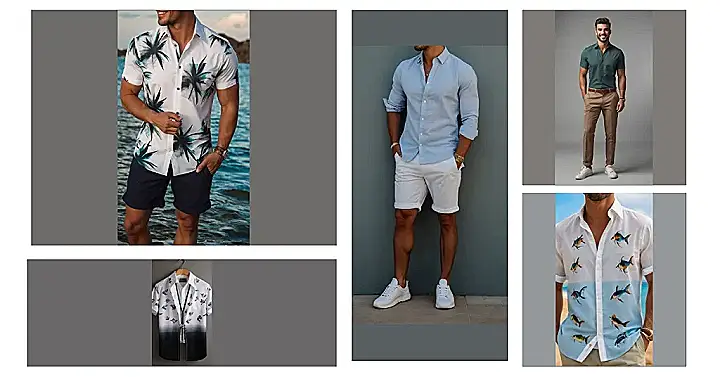 Planning your summer outfits shouldn’t be like trying to solve a super hard math problem. Look at this guy! He’s rocking a cool, breezy button-down that’s perfect for those hot days. It’s way more exciting than just a plain t-shirt. Plus, you can totally wear it open with a plain tee underneath if you wanna be extra cool. Now you can look like you’re ready for vacation, even if you’re just heading to the local ice cream shop!