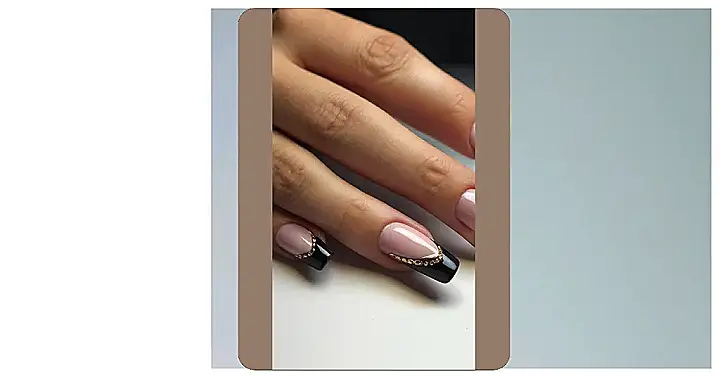 These nails are seriously fancy! Forget boring old violet, these beauties are a sophisticated mix of black and a delicate, pinky-nude. Imagine yourself showing these off – you’d be the envy of everyone at school! That tiny golden chain detail is like a mini-treasure hunt on your fingertips; each nail is a tiny work of art. Plus, black and gold go with EVERYTHING, making them super versatile. You could rock these for a night out or even just a casual Friday.