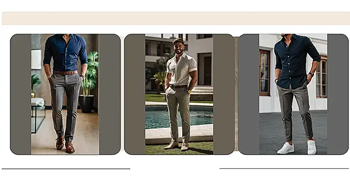 So, you want to look like you own a yacht without actually owning one? This guy’s got it figured out. The slightly unbuttoned shirt gives off “I’m relaxed, but important” vibes, while the tailored pants and fancy belt say “I care about my appearance, but not TOO much.” It’s the perfect combo for looking sharp at a summer party or, you know, just chilling by your imaginary pool.